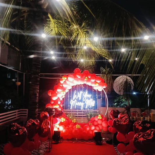 Will You Marry Me Red Balloon Decoration in Hyderabad | Romantic Proposal Setup