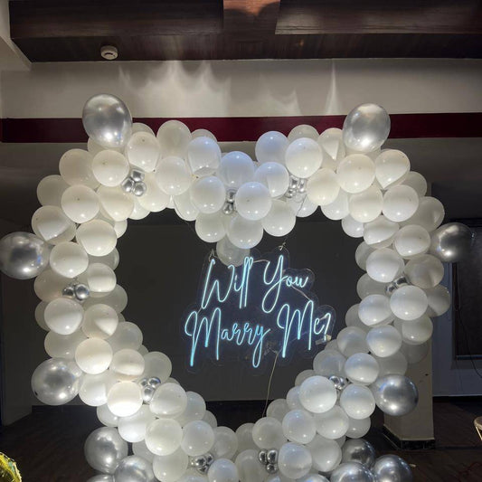 Will You Marry Me Balloon Decoration in Hyderabad | White Heart Proposal Setup