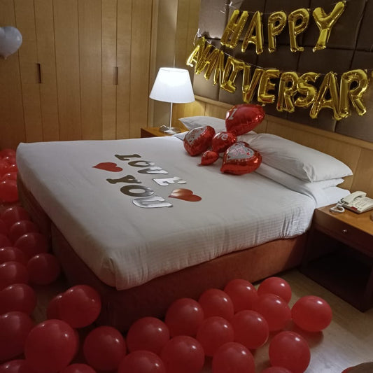Red & Golden LOVE Theme Balloon Birthday Decoration in Hyderabad
